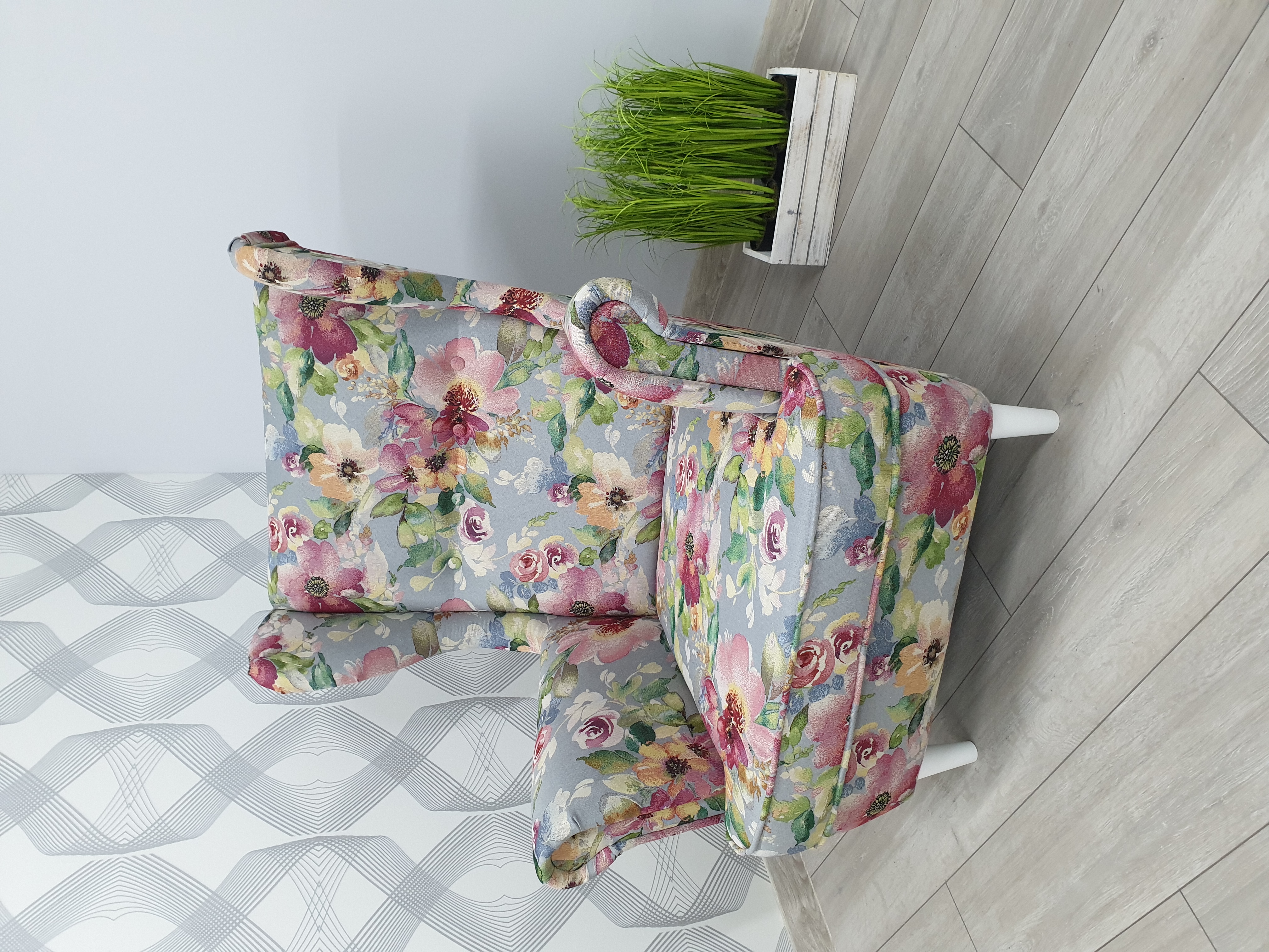 Stylowa, kwiatowa tapicerka, odporna na ścieranie, przyjazna dla skóry, a zarazem łatwa do czyszczenia – doskonale sprawdzi się w codziennym użytkowaniu.