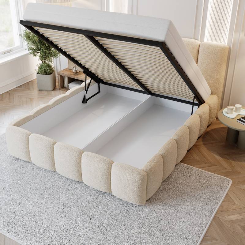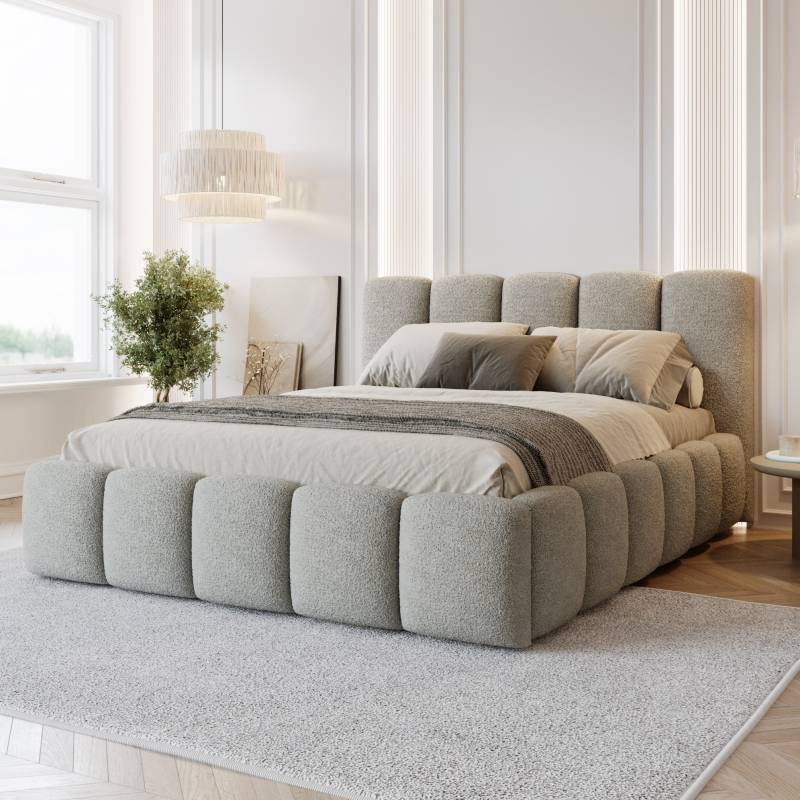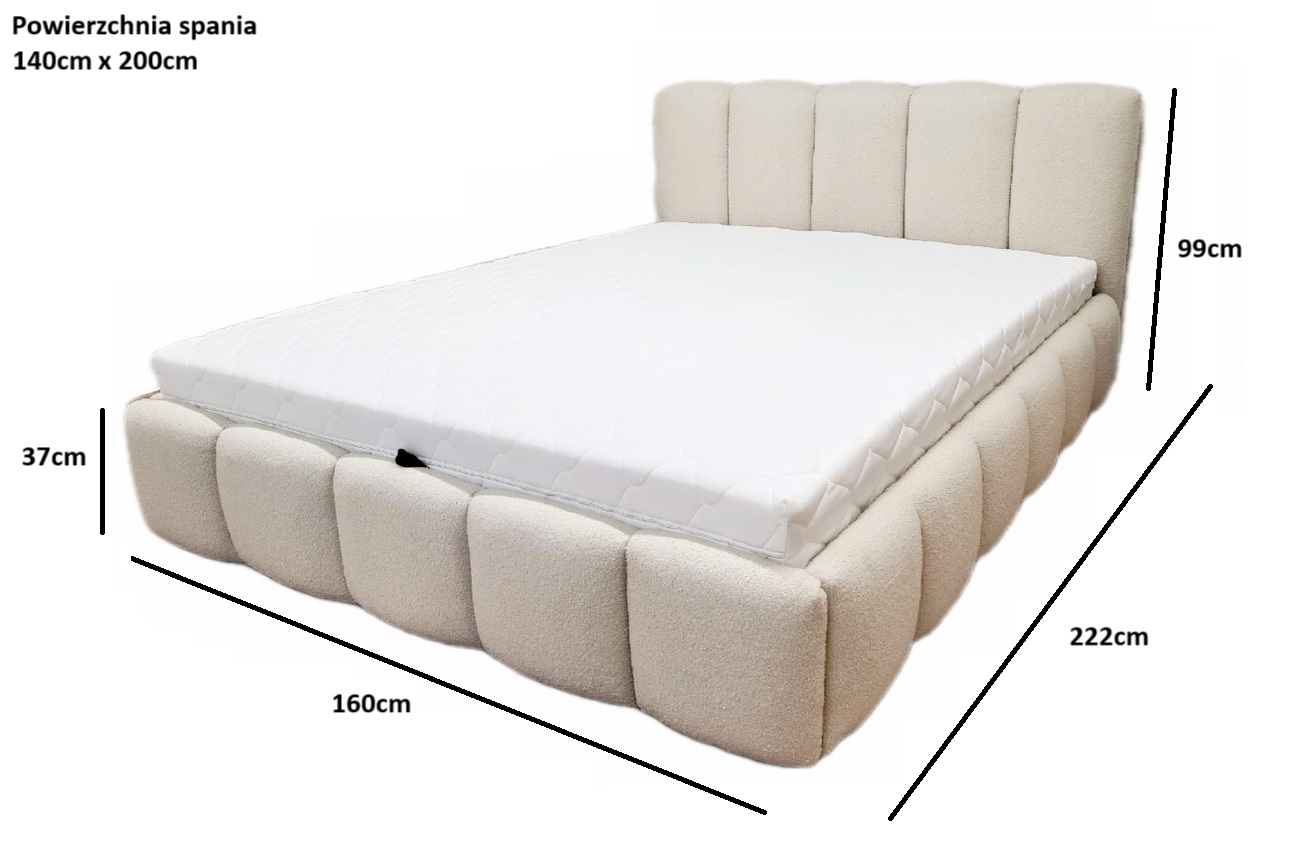 Odkryj luksusowe łóżko tapicerowane Venus, które łączy w sobie elegancki design, wyjątkową wygodę i praktyczne rozwiązania. Pokryte modną tkaniną boucle, prezentuje się stylowo i doskonale wpisuje się w nowoczesne aranżacje wnętrz. Masywna konstrukcja, wypełniona grubą pianką, zapewnia niezrównany komfort snu oraz trwałość na długie lata.