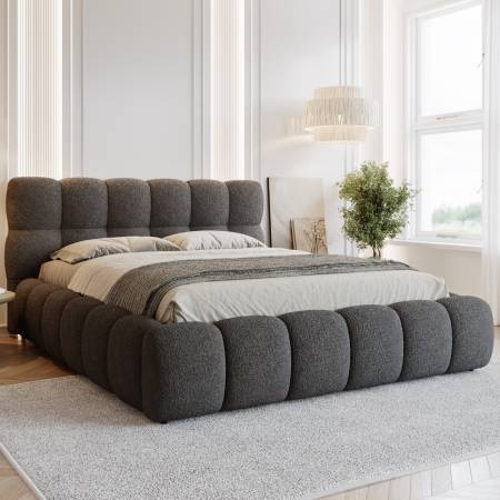 Dzięki solidnej konstrukcji z drewna i płyty meblowej, łóżko gwarantuje trwałość i stabilność przez długie lata. Eleganckie tapicerowanie dodaje przytulności, a miękkie wezgłowie zapewnia wygodne oparcie przy czytaniu książek czy porannej kawie.