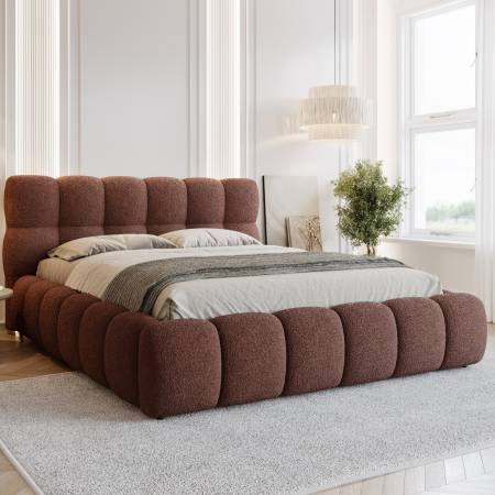 Solidna rama wykonana z trwałych materiałów oraz starannie wykonane tapicerowanie gwarantują nie tylko stabilność, ale i elegancki wygląd. Miękkie, tapicerowane wezgłowie zapewnia wygodne oparcie i dodaje sypialni przytulności.