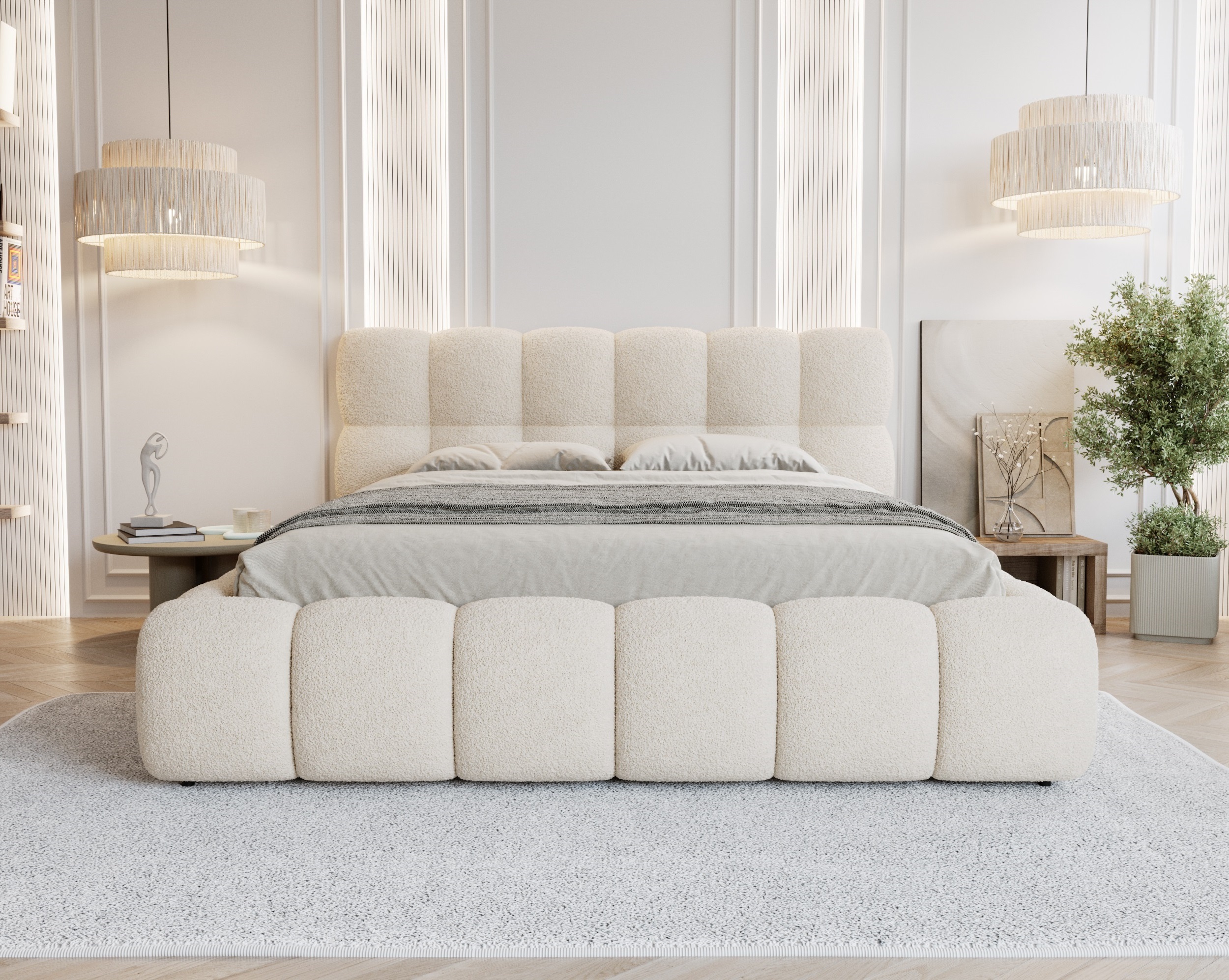 ✅ Tkanina boucle – miękka, przytulna i niezwykle stylowa, nadaje wnętrzu wyjątkowy charakter.
