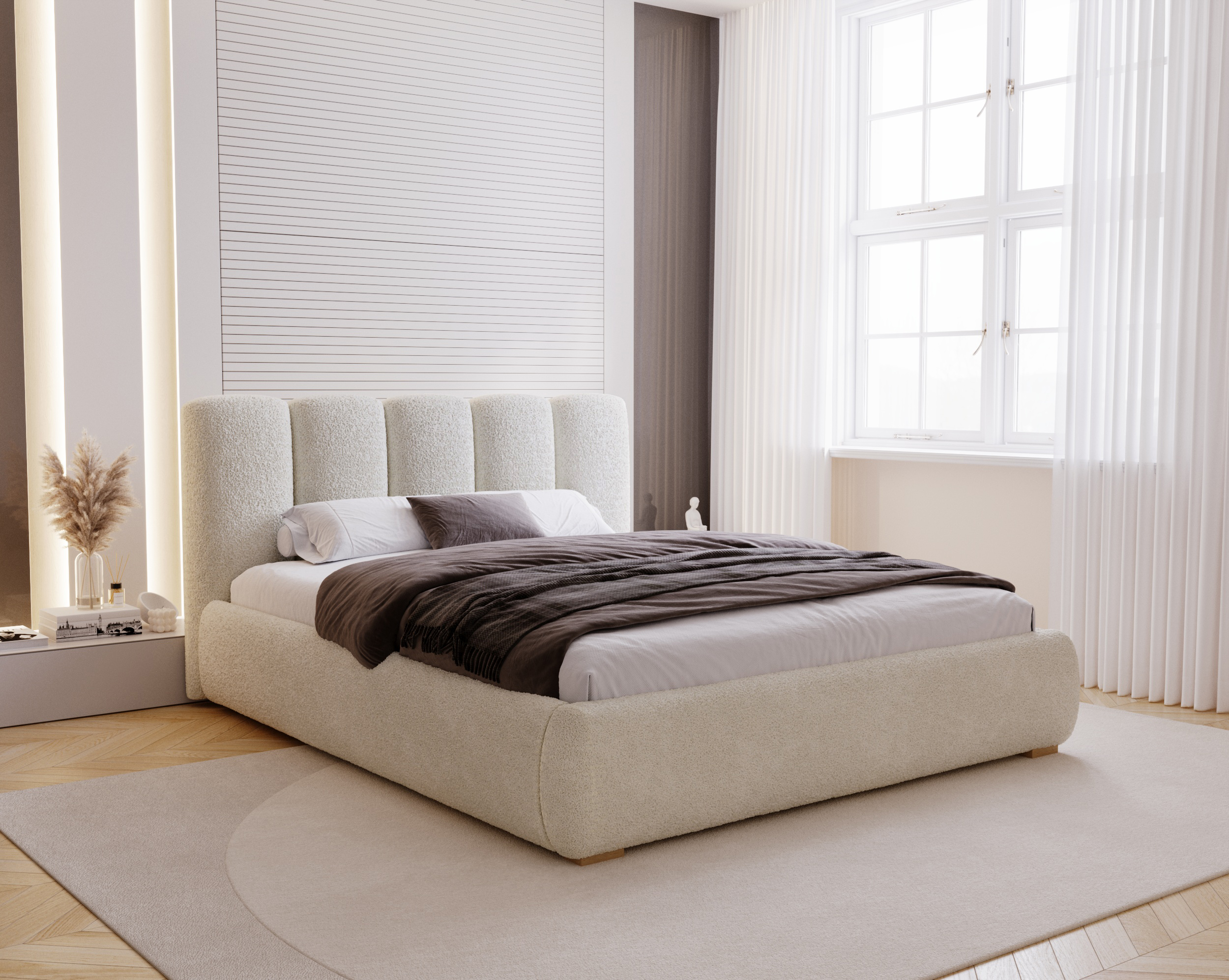 Łóżko tapicerowane 160x200 z pojemnikiem VELLA to nowoczesne łóżko do sypialni, które łączy elegancję, trwałość i funkcjonalność. Model został wyposażony w pojemnik na pościel oraz metalowy stelaż z podnośnikami gazowymi, co czyni go praktycznym rozwiązaniem do mieszkań i domów.