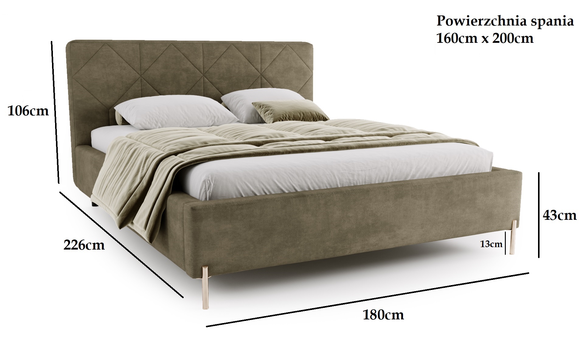 Solidna konstrukcja oraz metalowy stelaż gwarantują trwałość, stabilność i odpowiednie podparcie materaca 160x200, co przekłada się na wysoki komfort snu. Praktyczny pojemnik na pościel to dodatkowa przestrzeń do przechowywania, dzięki której łóżko tapicerowane z pojemnikiem staje się nie tylko estetycznym, ale i funkcjonalnym elementem wyposażenia sypialni.