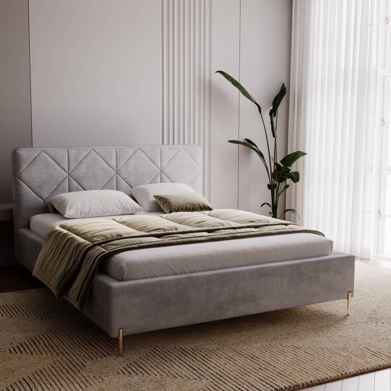 Łóżko tapicerowane Loren 180x200 cm to stylowa i funkcjonalna propozycja do nowoczesnej sypialni. Jasna, miękka tapicerka w połączeniu z geometrycznie pikowanym zagłówkiem tworzy elegancki, ponadczasowy design, który doskonale wpisuje się w trendy wnętrzarskie. Model Loren łączy komfort codziennego użytkowania z solidnym wykonaniem i estetyką klasy premium.